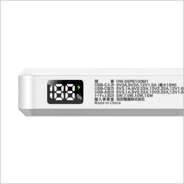 | 出力 USB-C | USB-C:5V-3A、9V-2.22A、12V-1.67A、10V-2.25A(SCP)、22.5W(MAX) USB-A:5V-3A、9V-2A、12V-1.5A、10V-2.25A(SCP)、22.5W(MAX) ワイヤレス充電:5W / 7.5W / 10W / 15W |